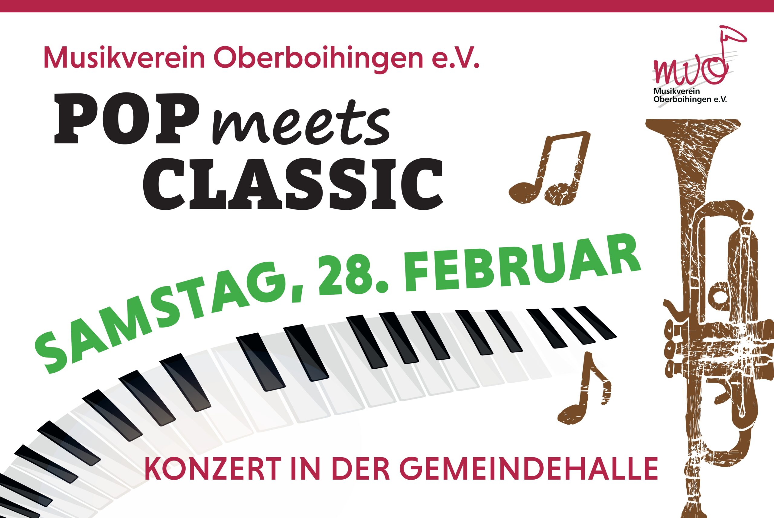 Der Musikverein Oberboihingen lädt am Samstag, 28. Februar um 19.30 Uhr zu seinem Mottokonzert „Pop meets Classic“ in die Gemeindehalle nach Oberboihingen ein ...